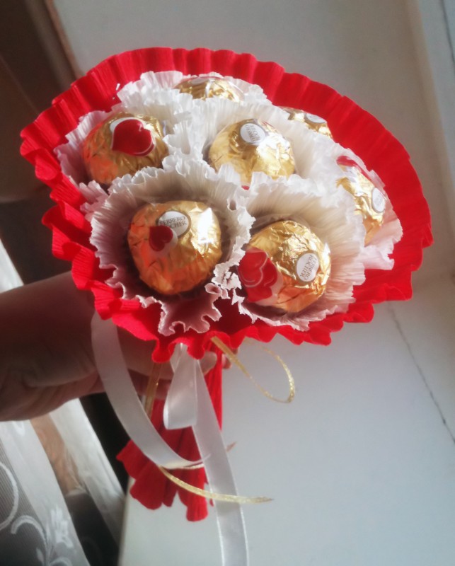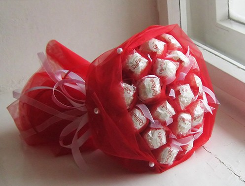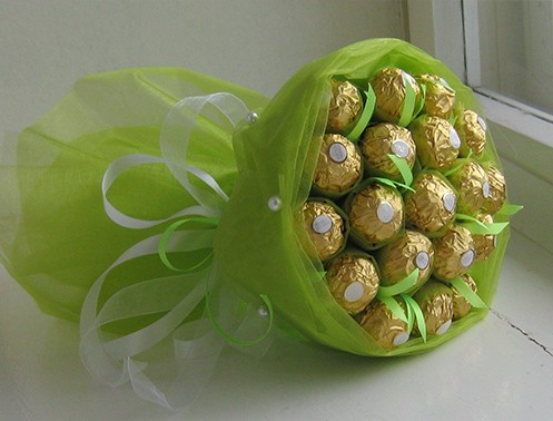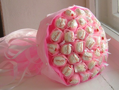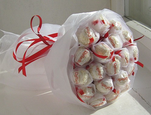 Ferrero Rocher и Raffaello — это конфеты из нежного шоколада и отборных орехов, которые любят дети и взрослые. «Букет-Бутик» представляет коллекцию букетов с использованием кондитерских шедевров для различных торжеств. Например, в арсенале марки есть оригинальное дерево из конфет — белоснежное творение украсит свадебное рождество или день рождения любого сладкоежки. Теперь на букет можно не только любоваться, но и съесть или им же угостить пришедших на праздничный ужин гостей.