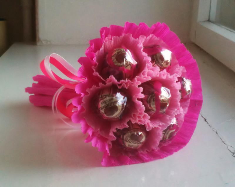 Букет считается универсальным подарком для любого торжества — дня рождения, свадьбы, юбилея. В традиционном понимании букет составляется из разнообразных цветов, веточек, бантиков, цветной бумаги и других красивых элементов. У такой композиции много плюсов — на него приятно любоваться, он приятно пахнет, и только один минус — кроме визуального эффекта, он не несет никакой практической пользы. Поэтому в компании «Букет-Бутик» решили заменить цветы конфетами известных марок.